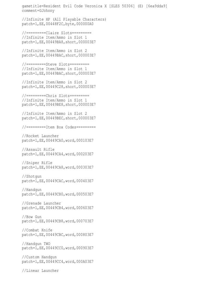 Dec 02, 2010 · more resident evil: Veronica x on the gamecube, gamefaqs has 9 cheat codes and secrets. Veronica x on the playstation 2, gamefaqs has 9 cheat codes and secrets. Code veronica x cheats and tips. Code veronica x please send them in here. If you have any cheats or tips for resident evil: Veronica x hd for xbox 360.if you've … Oct 20, 2021 · below is a list of all unlockables in resident evil code:veronica and resident evil code:veronica x. Code veronica x questions & answers page. The best place to get cheats, codes, cheat codes, walkthrough, guide, faq, unlockables, tricks, and secrets for playstation 2 (ps2). We have 23 cheats and tips on playstation 2. The best place to get cheats, codes, cheat codes, walkthrough, guide, faq, unlockables, achievements, and secrets for resident evil: In the japanese dreamcast biohazard code:veronica kanzenban version, claire starts out with the rocket launcher in the very easy difficulty by default.